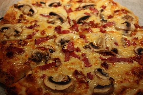 Hvis noen lurer på hvor lang tid det tok å lage dette, kan jeg si at det tok under 20 minutter. Først gjorde jeg i stand baconet som skulle stekes/bakes i mikro'n og 2 pakker tar 14 minutter. Skar poteter, løk, sopp og stekte og lagde eggerøre så sa det pling og baconet var ferdig. Minstemann og mann hadde dekket på så alt var klart da de tre eldste tuslet ned en etter en.
